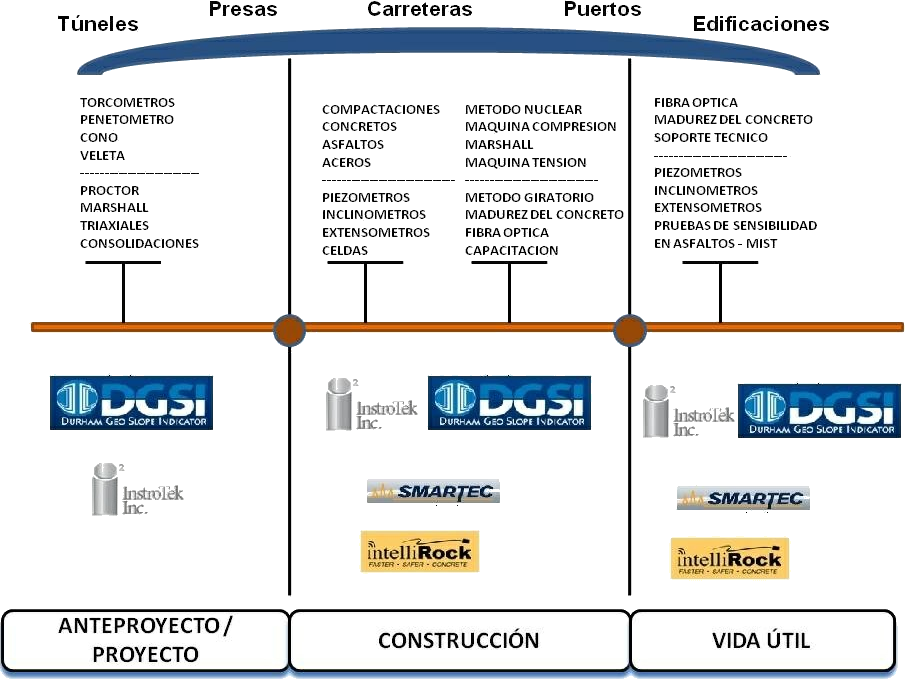 y Campo en Geotécnica y Control Estructural en obras como Túneles, Presas, Carreteras, Vialidades y Estructuras en General.